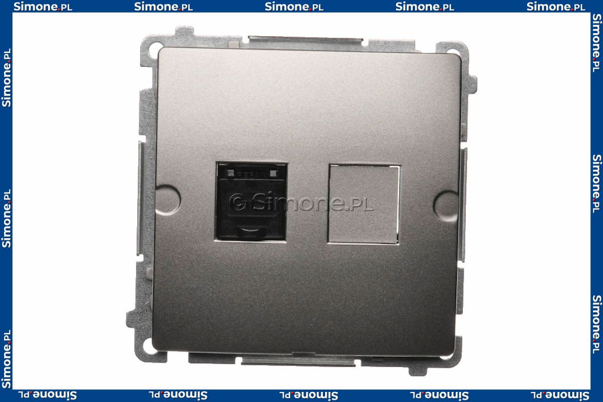 Gniazdo komputerowe pojedyncze 1xRJ45 kat.6 z przesłoną przeciwkurzową Satynowy Met. Simon Basic