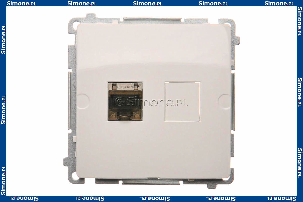 Gniazdo komputerowe pojedyncze 1xRJ45 kat.6 ekranowane z przesłoną przeciwkurzową Biały Simon Basic