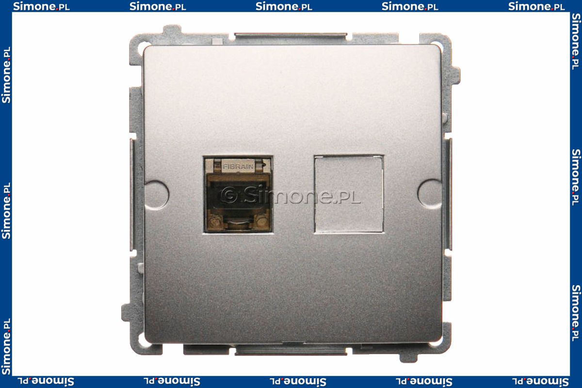 Gniazdo komputerowe pojedyncze 1xRJ45 kat.6 ekranowane z przesłoną przeciwkurzową Srebrny Mat. Simon Basic