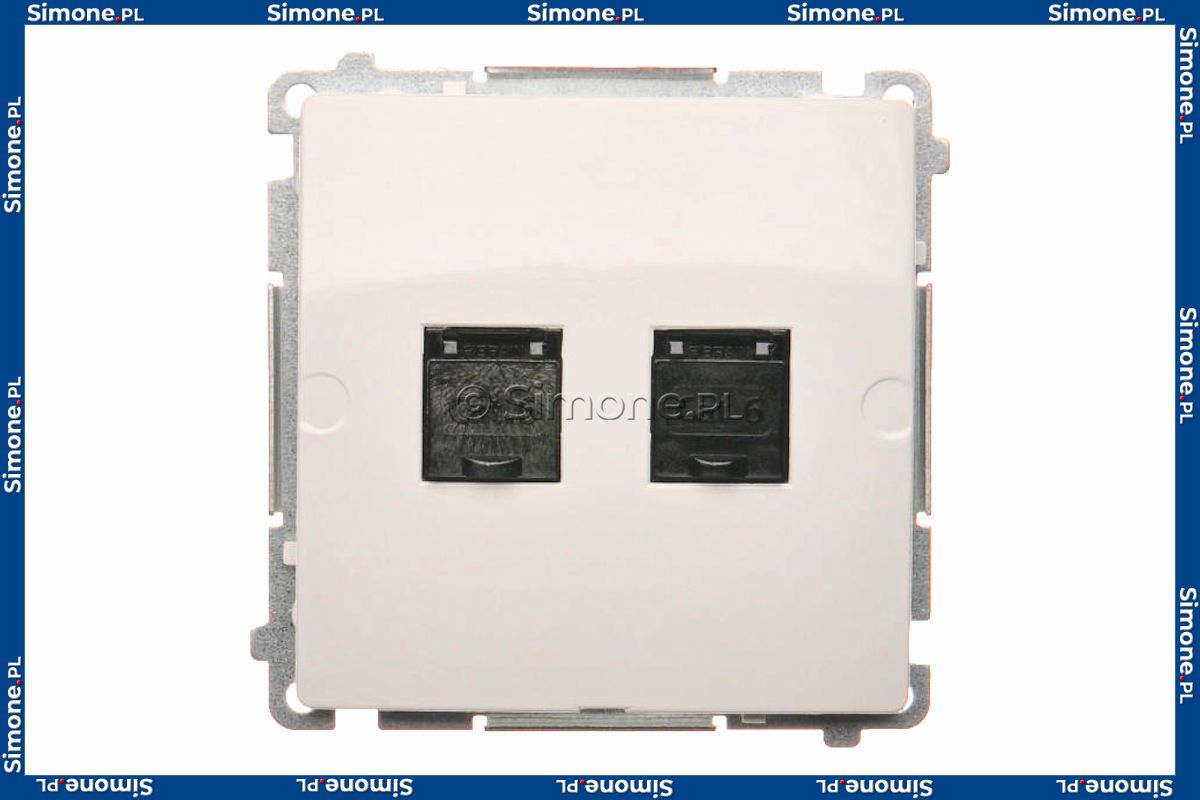 Gniazdo komputerowe podwójne 2×RJ45 kat. 6 z przesłoną przeciwkurzową z serii Simon Basic w kolorze białym o symbolu BM62.01/11 przeznaczone jest do realizacji połączeń sieciowych w nowoczesnych instalacjach teletechnicznych budynków mieszkalnych i użytkowych. Podwójna konstrukcja umożliwia jednoczesne podłączenie dwóch urządzeń sieciowych w jednym punkcie instalacyjnym, a przesłony przeciwkurzowe chronią porty przed zanieczyszczeniami, zwiększając trwałość oraz niezawodność połączeń.