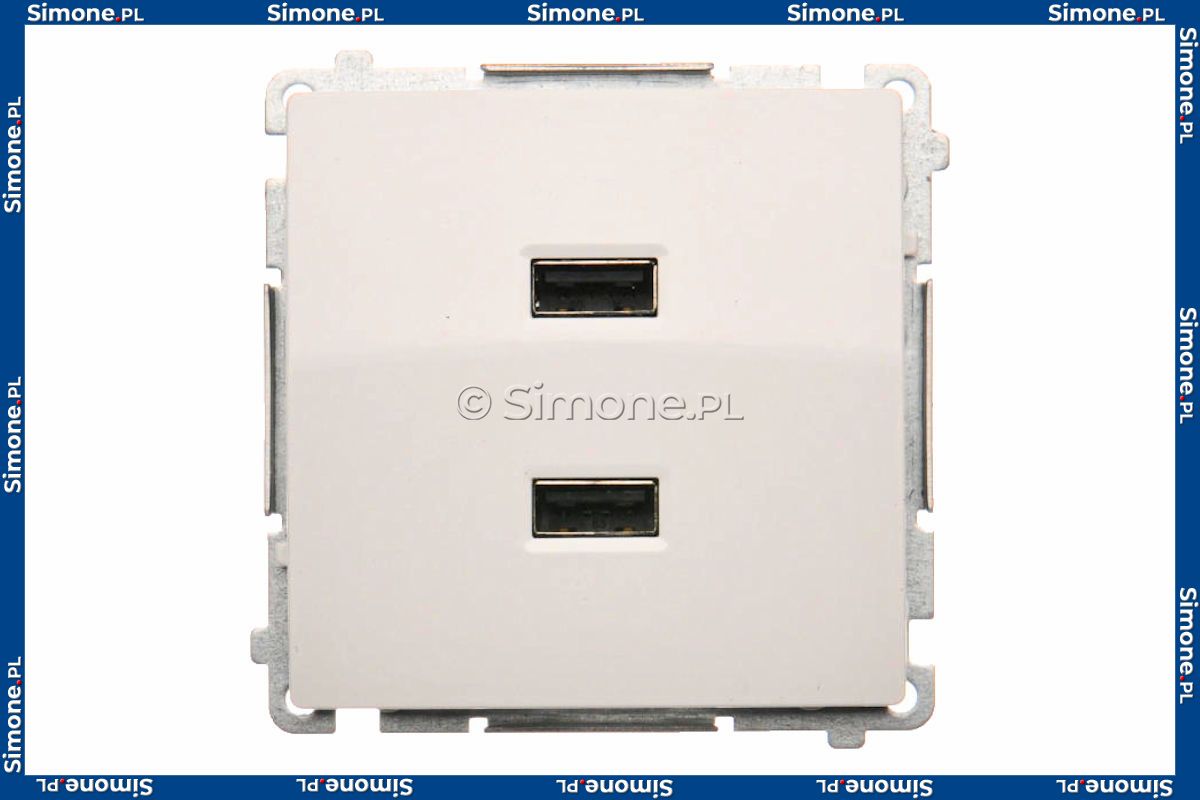 BMC2USB.01/11 Ładowarka 2x USB Typ A 10W 2.1A 5V Biały Simon Basic - Widok z przodu