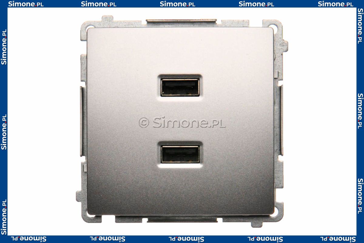BMC2USB.01/43 Ładowarka 2x USB Typ A 10W 2.1A 5V Srebrny Mat. Simon Basic - Widok z przodu