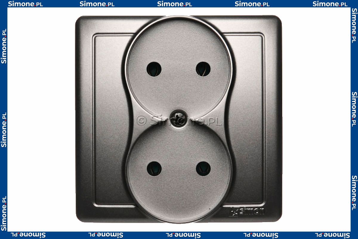 BMG2/29 Gniazdo podwójne bez bolca uziemiającego Satynowy Met. Simon Basic - Widok z przodu