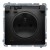 Nowoczesny wyłącznik Simon Basic na ciemnej ścianie, obok minimalistycznej dekoracji z grafiką i rzeźbą