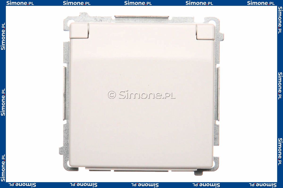Gniazdo pojedyncze hermetycznez bolcem uziemiającym i przesłonami torów prądowych z klapką w kolorze wyrobu Biały Simon Basic
