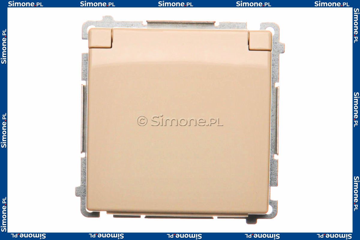 Gniazdo pojedyncze hermetycznez bolcem uziemiającym i przesłonami torów prądowych z klapką w kolorze wyrobu Beżowy Simon Basic