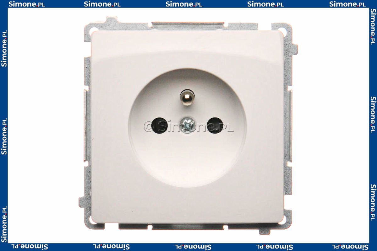 BMGZ1CZ.01/11 Gniazdo pojedyncze z bolcem uziemiającym i przesłonami torów prądowych Biały Simon Basic - Widok z przodu