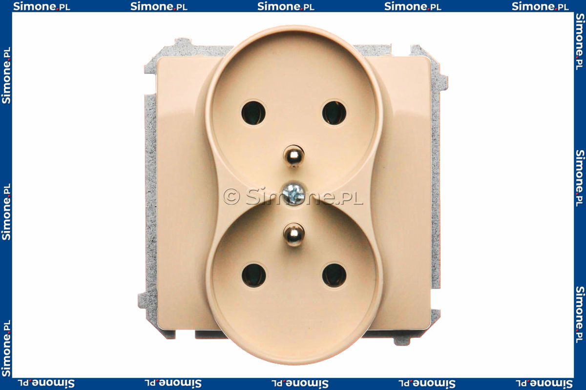 BMGZ2M.01/12 Gniazdo podwójne z bolcem uziemiającym Beżowy Simon Basic - Widok z przodu