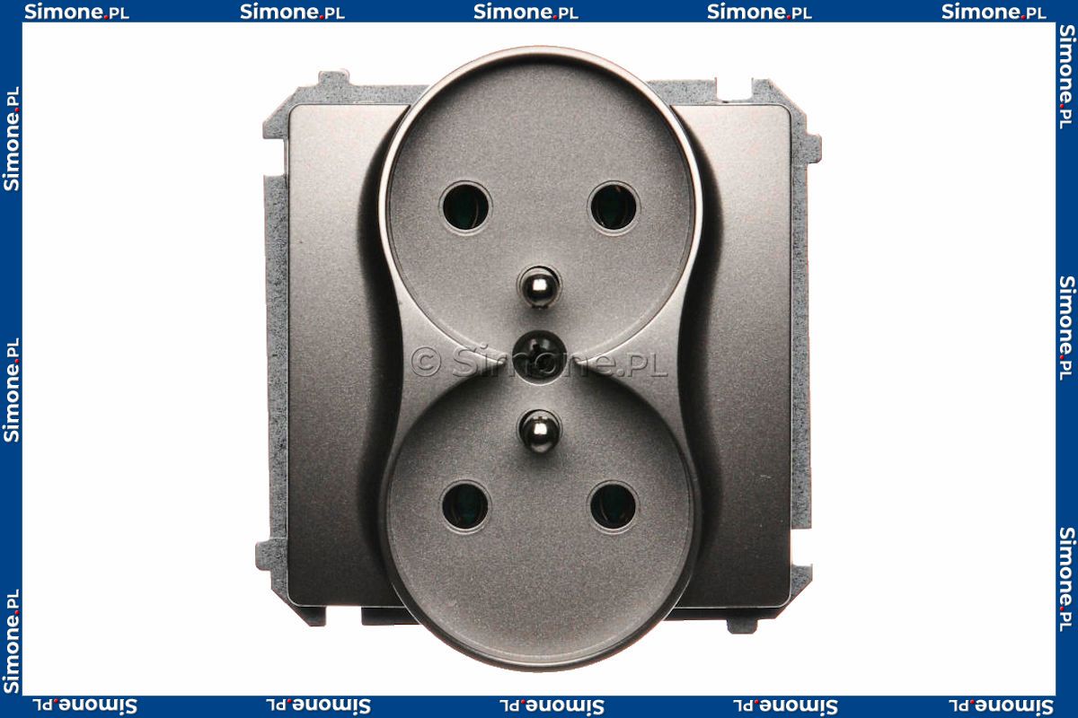 BMGZ2M.01/29 Gniazdo podwójne z bolcem uziemiającym Satynowy Met. Simon Basic - Widok z przodu