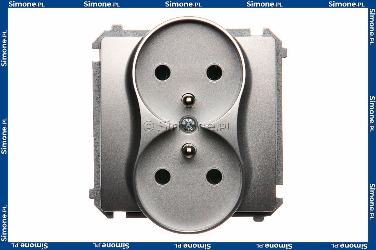 BMGZ2M.01/43 Gniazdo podwójne z bolcem uziemiającym Srebrny Mat. Simon Basic - Widok z przodu