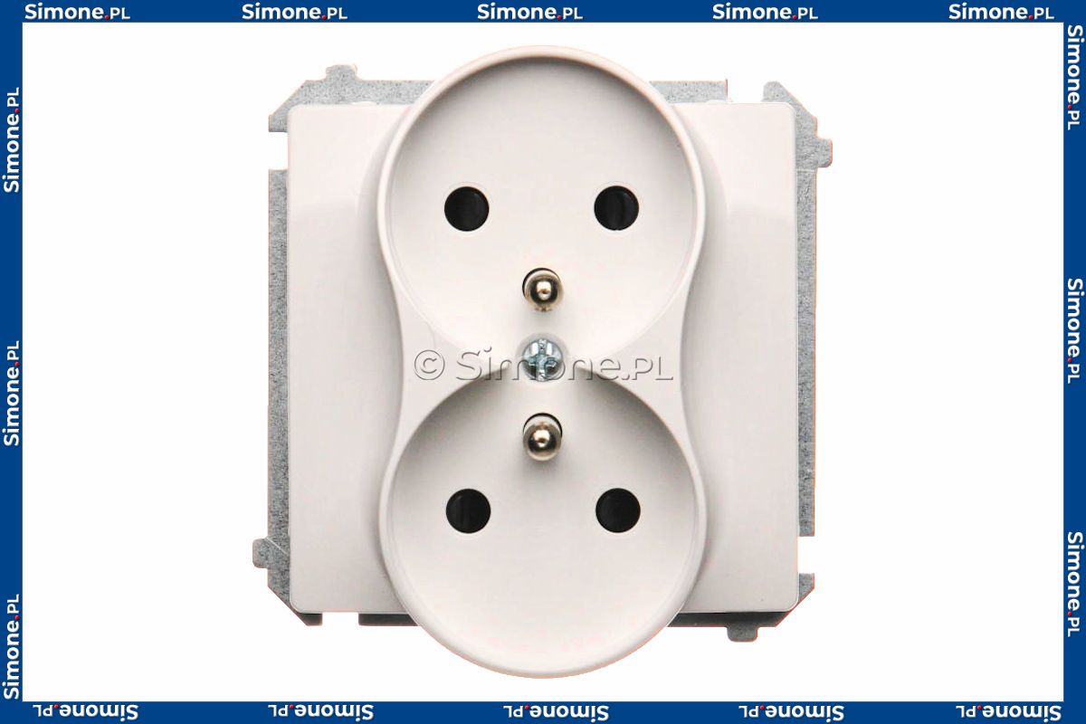 Gniazdo podwójne z bolcem uziemiającym i przesłonami torów prądowych Biały Simon Basic