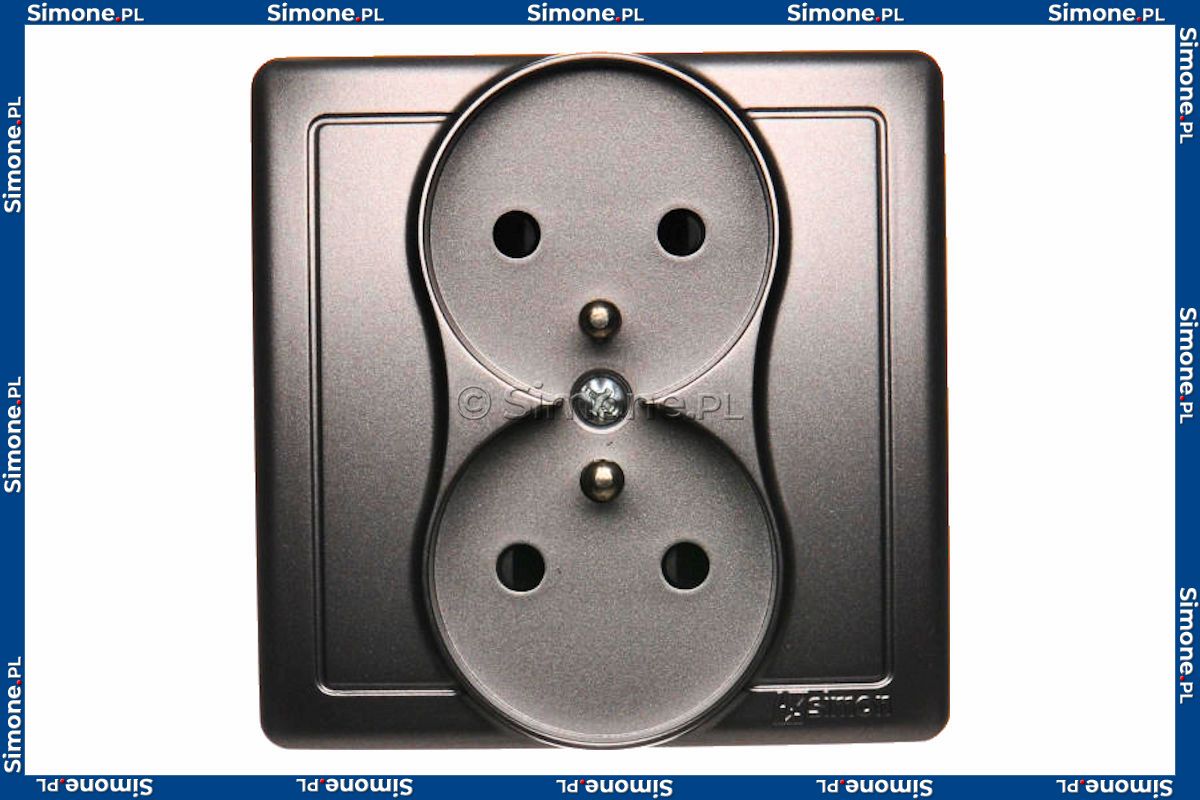 Gniazdo podwójne z bolcem uziemiającym i przesłonami torów prądowych Inox Met. Simon Basic
