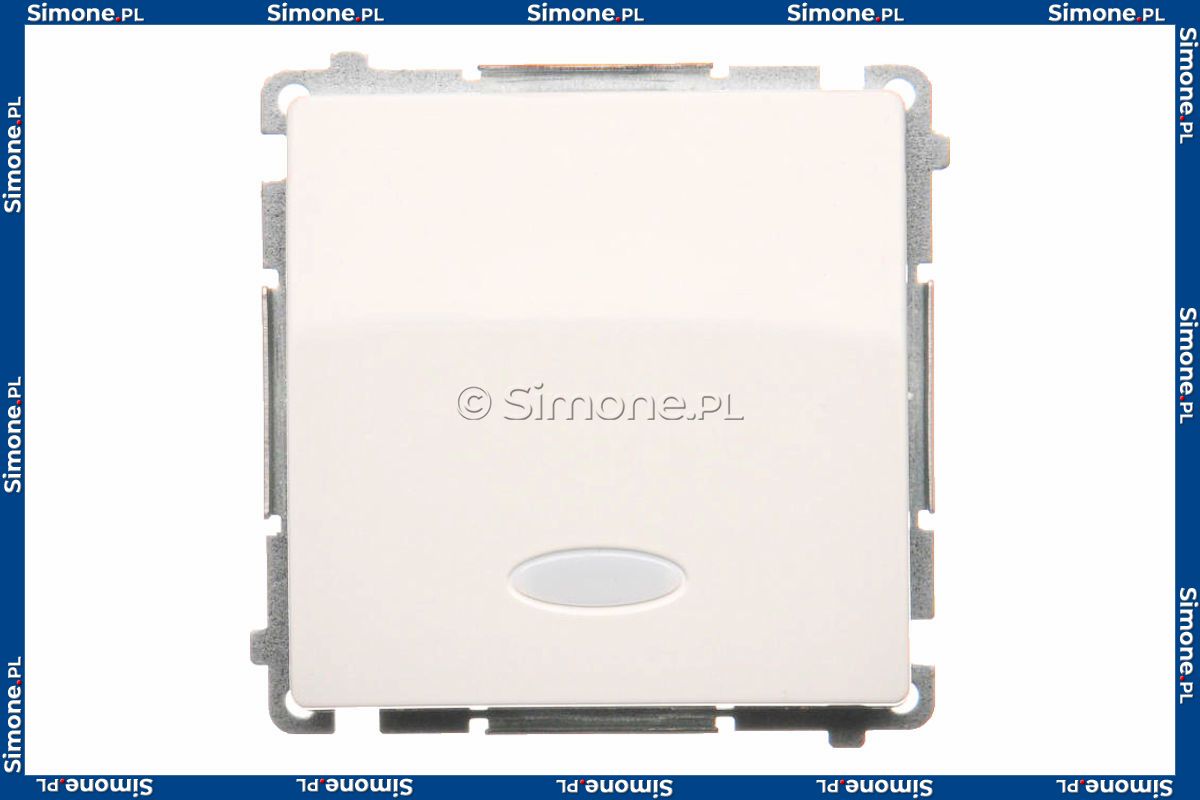 Przycisk zwierny pojedynczy z podświetleniem typu LED w kolorze niebieskim Biały Simon Basic