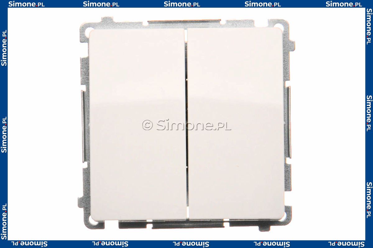 Przycisk zwierny podwójny, dwuobwodowy Biały Simon Basic