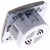 Szkic zdjęcia gniazdka elektrycznego obok którego znajdują się szczegółowe dane techniczne produktu-