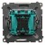 Nowoczesny wyłącznik Simon Basic na ciemnej ścianie, obok minimalistycznej dekoracji z grafiką i rzeźbą