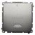 Nowoczesny wyłącznik Simon Basic na ciemnej ścianie, obok minimalistycznej dekoracji z grafiką i rzeźbą