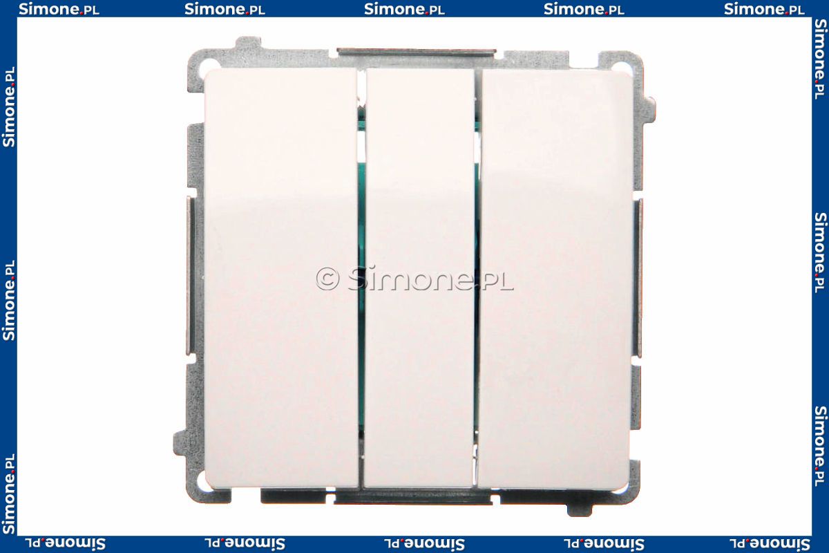 Łącznik potrójny z podświetleniem typu LED w kolorze niebieskim Biały Simon Basic