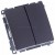 Nowoczesny wyłącznik Simon Basic na ciemnej ścianie, obok minimalistycznej dekoracji z grafiką i rzeźbą