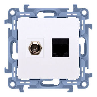 CASFRJ455.01/11 Gniazdo antenowe typu „F” + komputerowe RJ45 kat.5e, biały