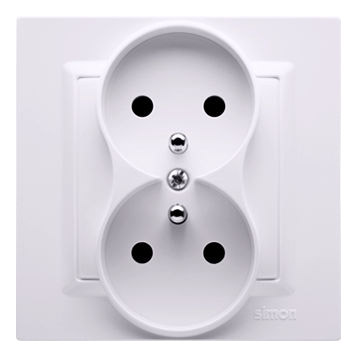 Gniazdo wtyczkowe podwójne z uziemieniem 16A, Kompletne, Nie pasuje do ramek Biały Simon 10