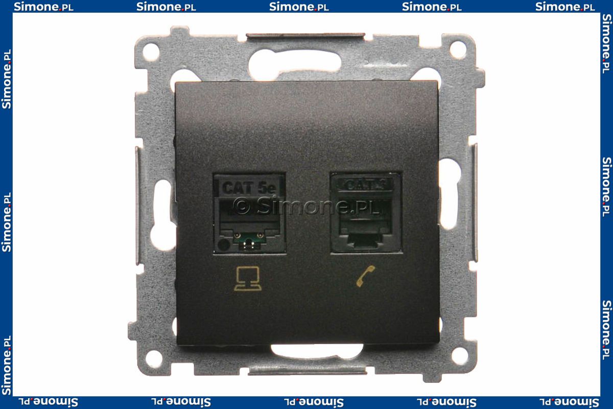 Gniazdo komputerowe RJ45 kategoria kat. 5e + gniazdo telefoniczne RJ12 Antracyt Simon 54