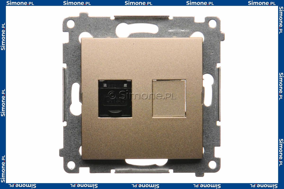 D61.01/44 Gniazdo komputerowe pojedyncze RJ45 kategoria 6, z przesłoną przeciwkurzową, (moduł), złoty mat, metalizowany