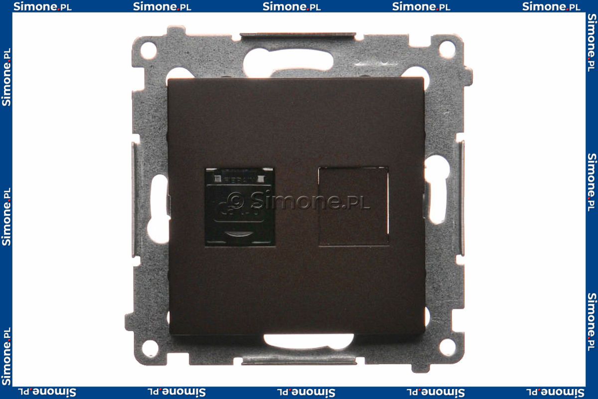 D61.01/46 Gniazdo komputerowe pojedyncze RJ45 kat. 6 z przesłoną przeciwkurzową Brąz Mat Simon 54 - Widok z przodu