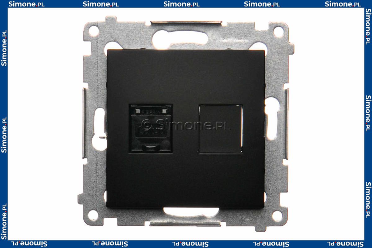 Gniazdo komputerowe pojedyncze RJ45 kat. 6 z przesłoną przeciwkurzową Czarny Mat Simon 54