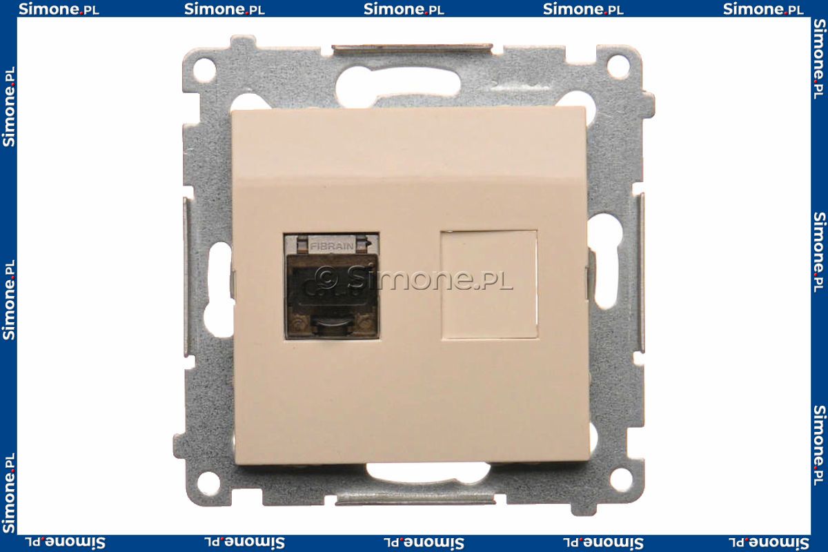 D61E.01/41 Gniazdo komputerowe pojedyncze RJ45 kat. 6 ekranowane z przesłoną przeciwkurzową Kremowy Simon 54 - Widok z przodu