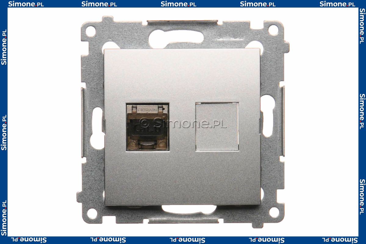D61E.01/43 Gniazdo komputerowe pojedyncze RJ45 kat. 6 ekranowane z przesłoną przeciwkurzową Srebrny Mat Simon 54 - Widok z przodu