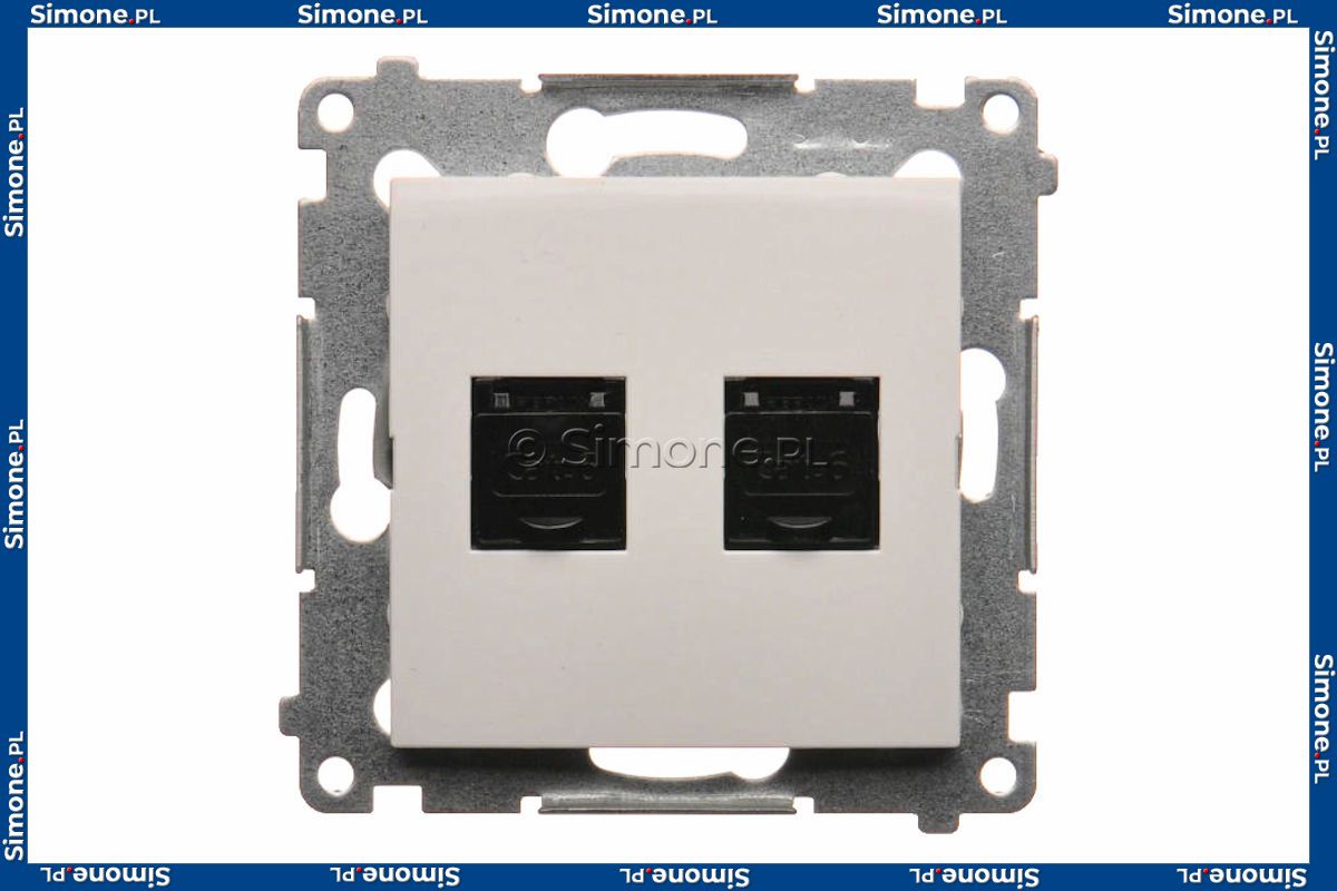 Gniazdo komputerowe podwójne 2xRJ45 kat. 6 z przesłoną przeciwkurzową Biały Simon 54