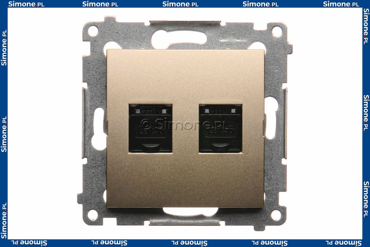Gniazdo komputerowe podwójne 2xRJ45 kat. 6 z przesłoną przeciwkurzową Złoty Mat Simon 54