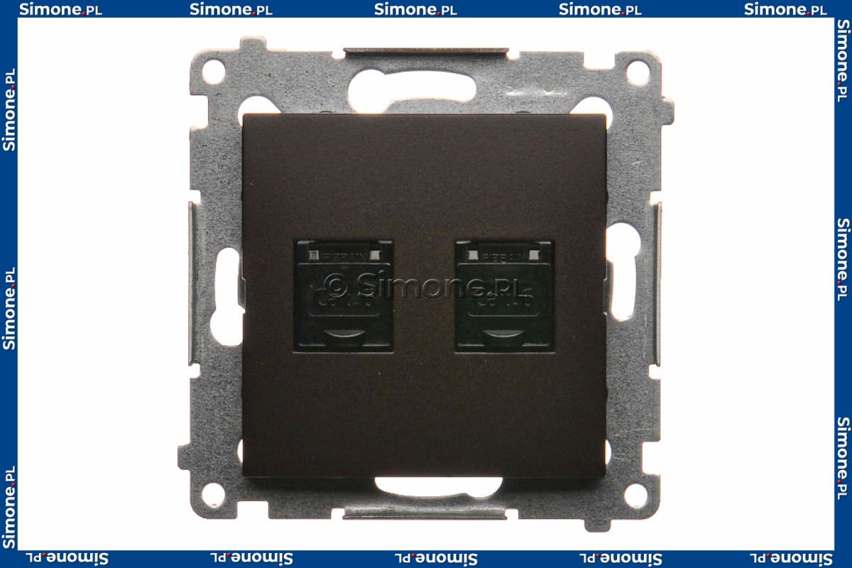 Gniazdo komputerowe podwójne 2xRJ45 kat. 6 z przesłoną przeciwkurzową Brąz Mat Simon 54