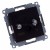Czarny wyłącznik pojedynczy ze ściemniaczem do LED w podwójnej ramce w kolorze Chrom z serii Simon 54 zamontowany na szarej ścianie