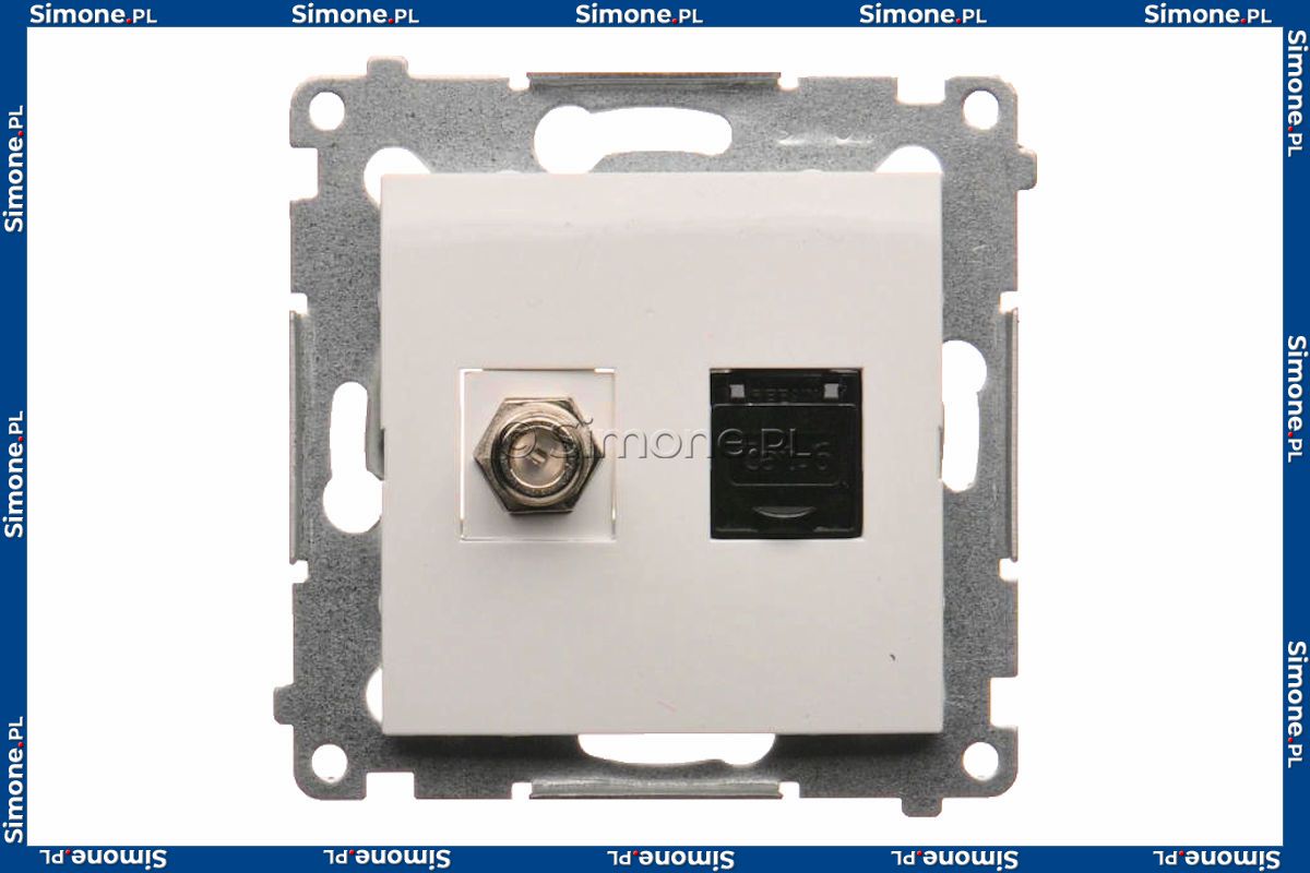 Gniazdo antenowe SAT pojedyncze + Gniazdo komputerowe kat.6 Biały Simon 54