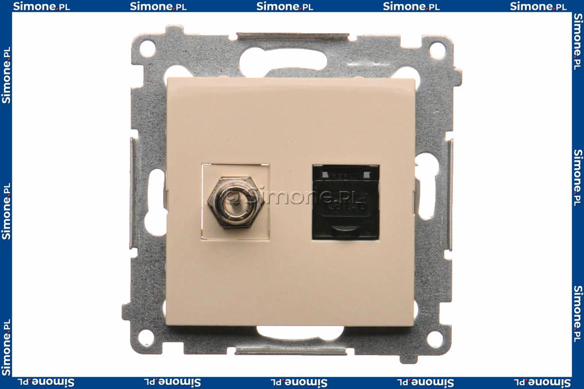 Gniazdo antenowe SAT pojedyncze + Gniazdo komputerowe kat.6 Kremowy Simon 54