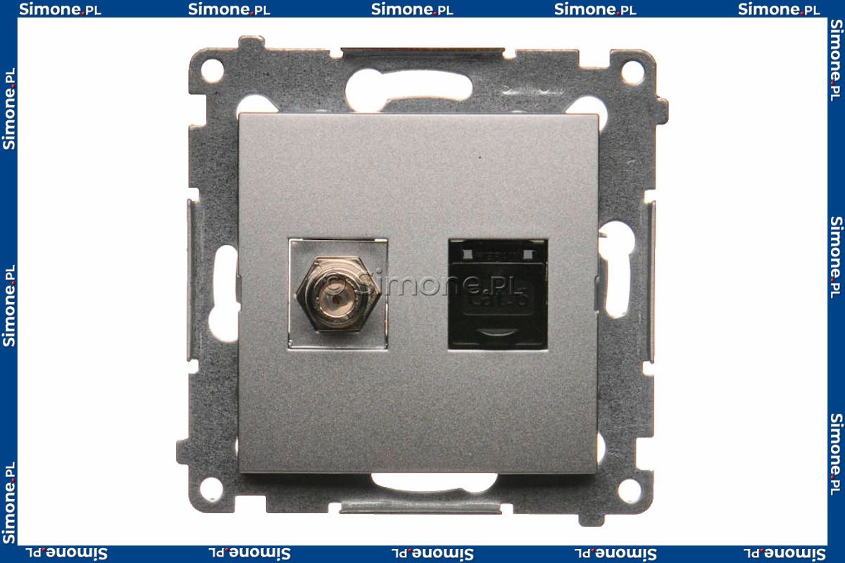 Gniazdo antenowe SAT pojedyncze + Gniazdo komputerowe kat.6 Srebrny Mat Simon 54
