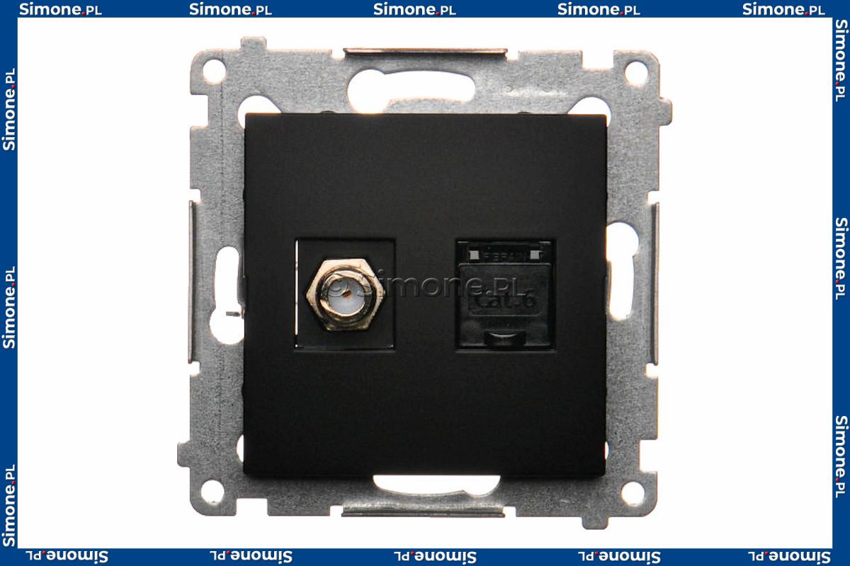 Gniazdo antenowe SAT pojedyncze + Gniazdo komputerowe kat.6 Czarny Mat Simon 54