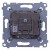 Czarny wyłącznik pojedynczy ze ściemniaczem do LED w podwójnej ramce w kolorze Chrom z serii Simon 54 zamontowany na szarej ścianie