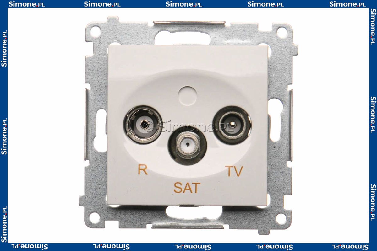 DASP.01/11 Gniazdo antenowe R-TV-SAT przelotowe Biały Simon 54 - Widok z przodu