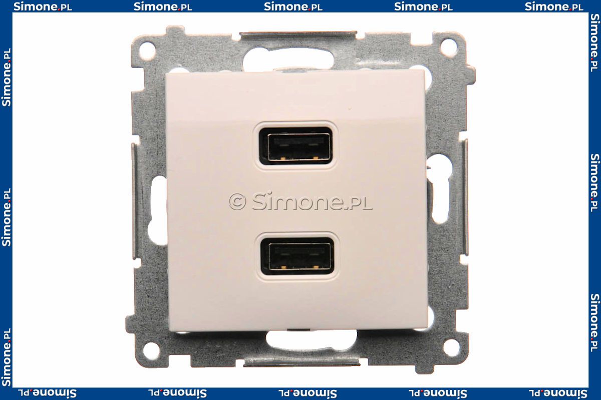 DC2USB.01/11 Ładowarka 2x USB Typ A 10W 2.1A 5V Biały Simon 54 - Widok z przodu