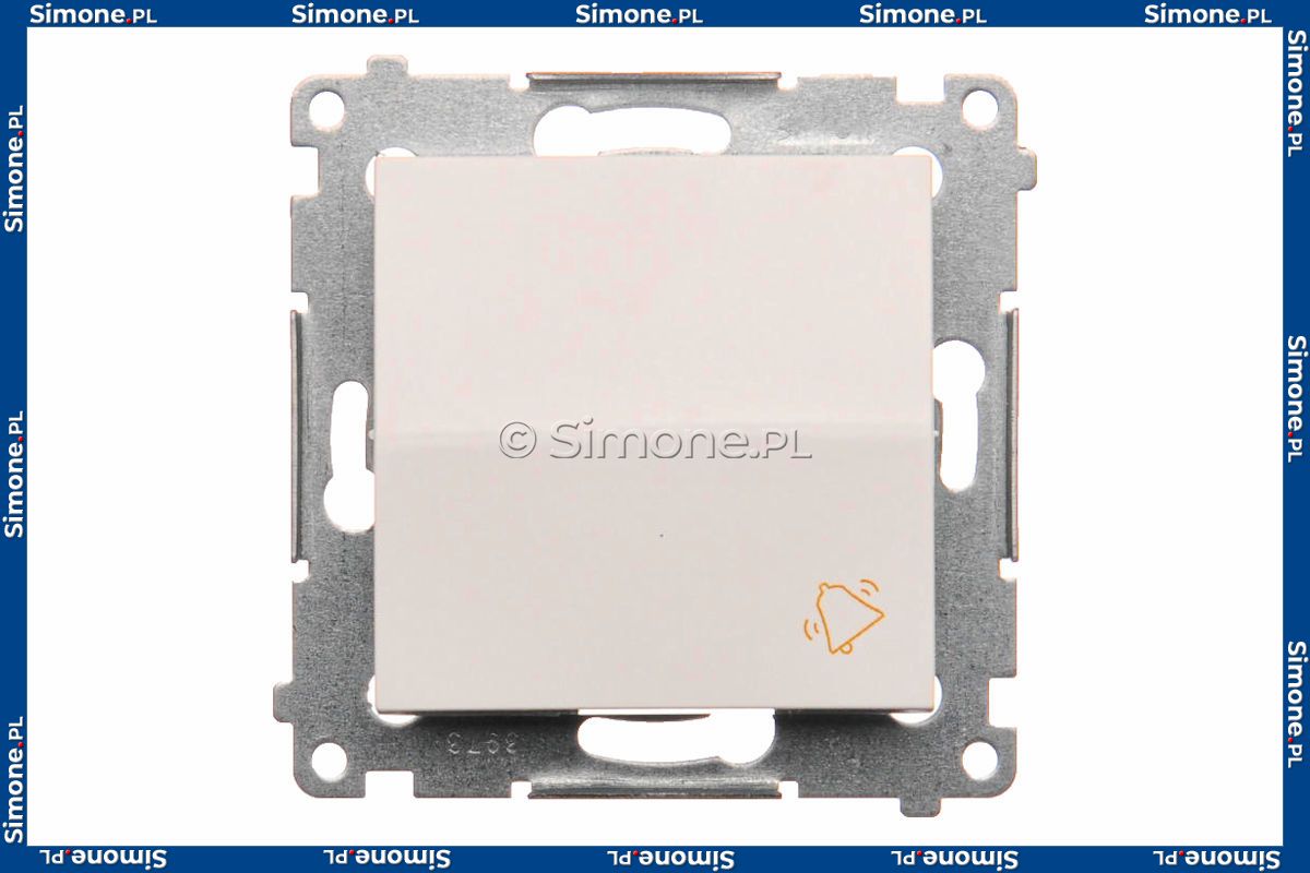 Przycisk dzwonkowy 10A z serii Simon 54 w kolorze Biały o symbolu DD1.01/11 zwany również przyciskiem chwilowym dokonuje krótkotrwałego połączenia obwodu. Produkt zaliczany jest do grupy łączników monostabilnych, co oznacza, że w swoim mechanizmie posiadają sprężynę, która po puszczeniu przycisku powoduje rozłączenie obwodu i jednoczesny powrót klawisza do pierwotnej pozycji.