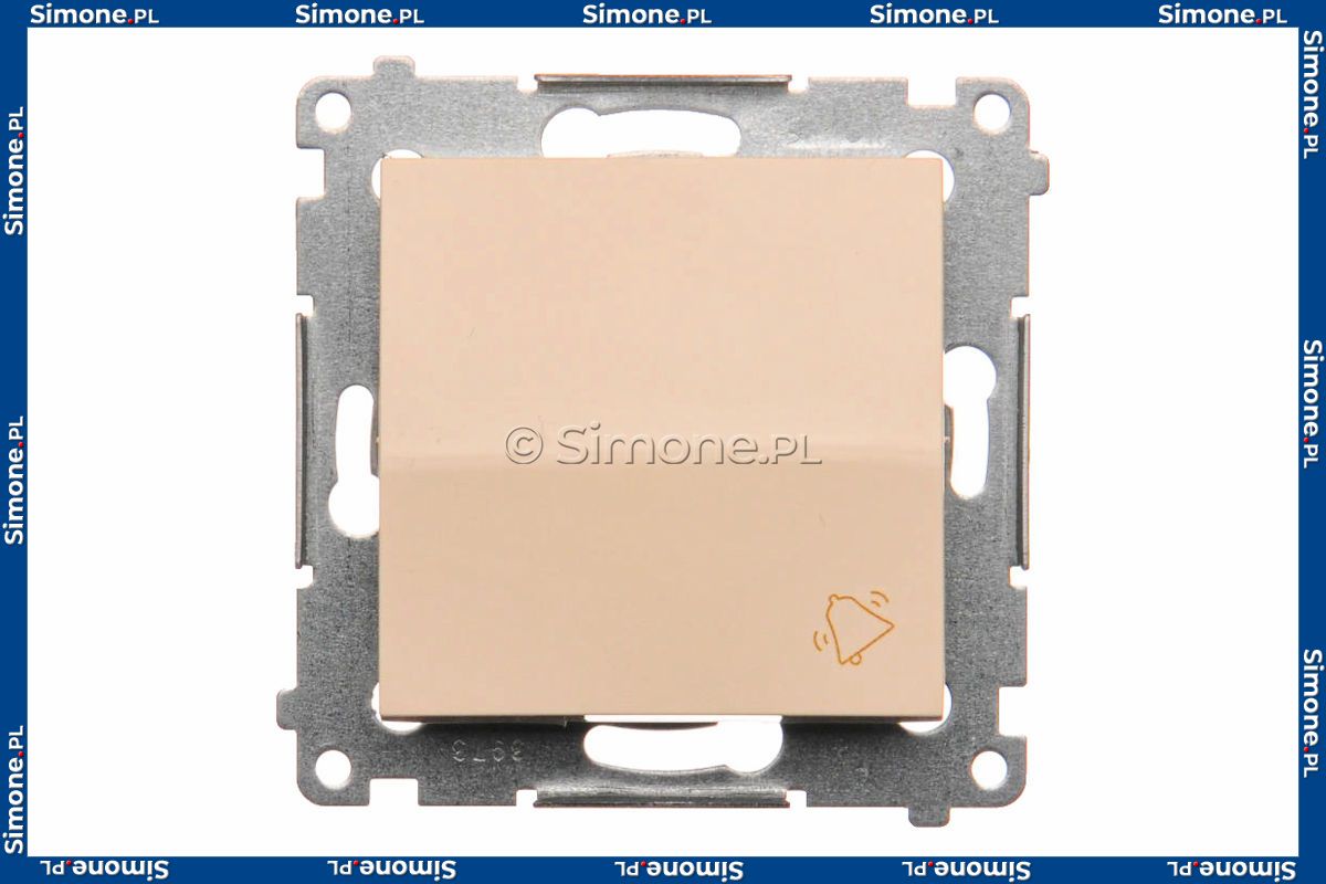 Przycisk dzwonkowy 10A z serii Simon 54 w kolorze Kremowy o symbolu DD1.01/41 zwany również przyciskiem chwilowym dokonuje krótkotrwałego połączenia obwodu. Produkt zaliczany jest do grupy łączników monostabilnych, co oznacza, że w swoim mechanizmie posiadają sprężynę, która po puszczeniu przycisku powoduje rozłączenie obwodu i jednoczesny powrót klawisza do pierwotnej pozycji.