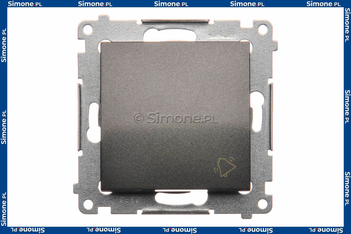 Przycisk dzwonkowy 16A z serii Simon 54 w kolorze Antracyt o symbolu DD1A.01/48 zwany również przyciskiem chwilowym dokonuje krótkotrwałego połączenia obwodu. Produkt zaliczany jest do grupy łączników monostabilnych, co oznacza, że w swoim mechanizmie posiadają sprężynę, która po puszczeniu przycisku powoduje rozłączenie obwodu i jednoczesny powrót klawisza do pierwotnej pozycji.