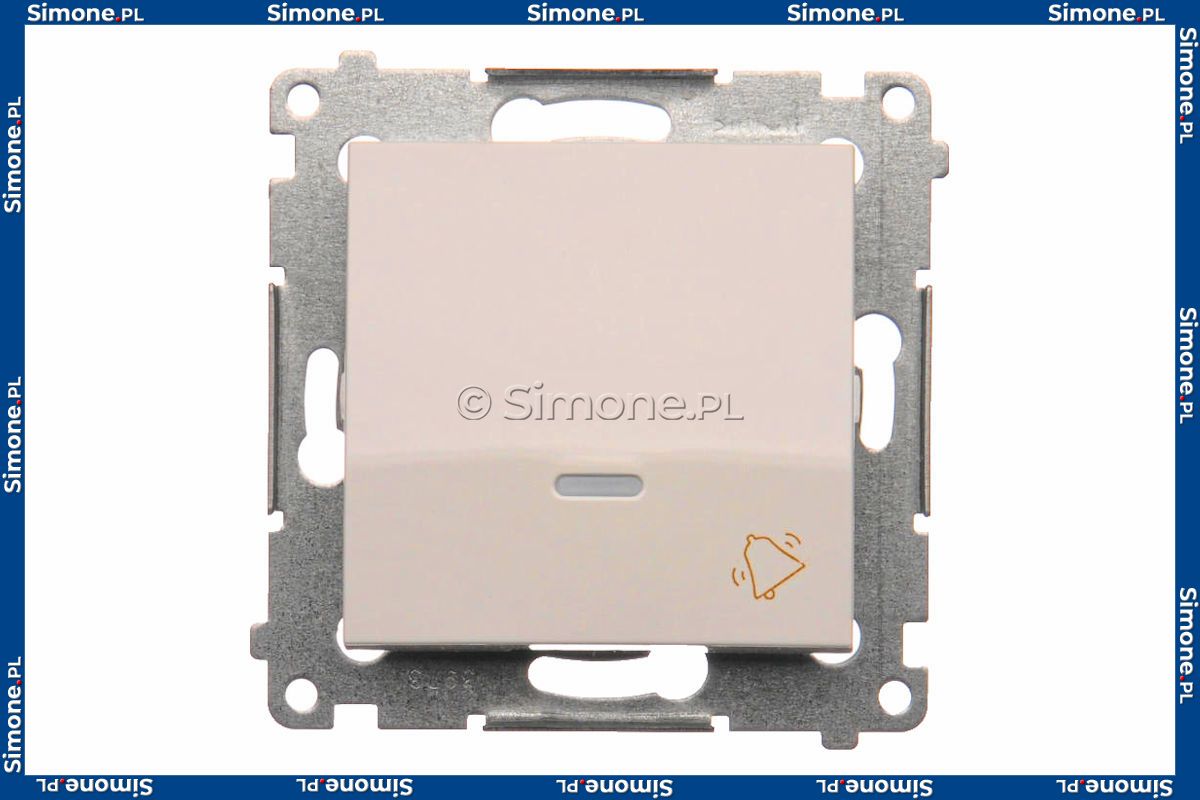 Przycisk dzwonkowy z podświetleniem typu LED w kolorze niebieskim 10A z serii Simon 54 w kolorze Biały o symbolu DD1L.01/11 zwany również przyciskiem chwilowym dokonuje krótkotrwałego połączenia obwodu. Produkt zaliczany jest do grupy łączników monostabilnych, co oznacza, że w swoim mechanizmie posiadają sprężynę, która po puszczeniu przycisku powoduje rozłączenie obwodu i jednoczesny powrót klawisza do pierwotnej pozycji.