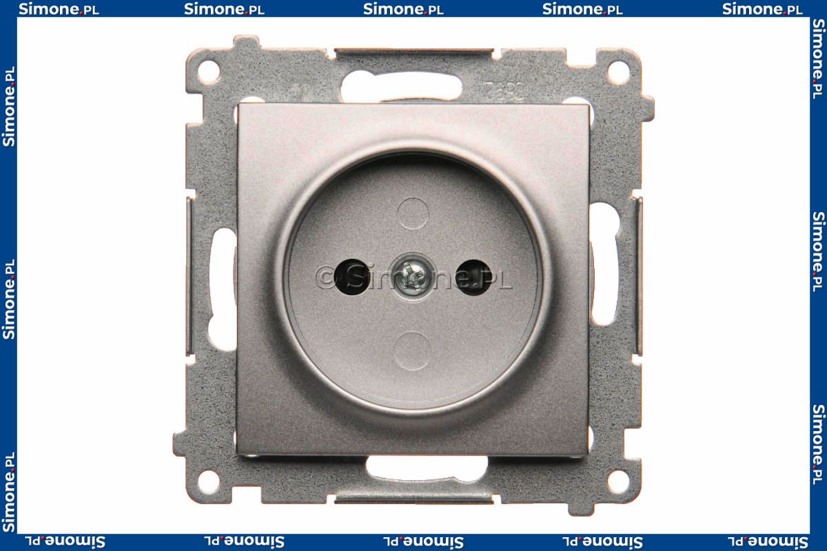 DG1Z.01/43 Gniazdo pojedyncze bez bolca uziemiającego z przesłoną torów prądowych Srebrny Mat Simon 54 - Widok z przodu