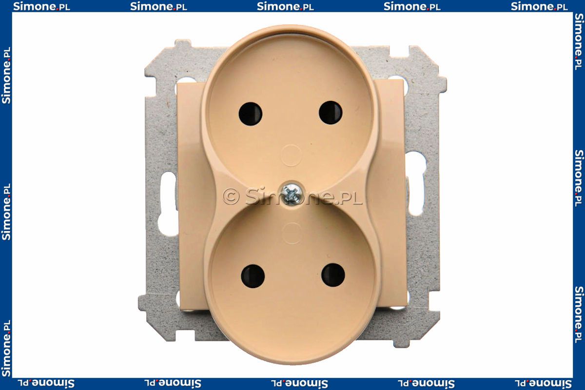 DG2MZ.01/41 Gniazdo podwójne bez bolca uziemiającego z przesłoną torów prądowych Kremowy Simon 54 - Widok z przodu