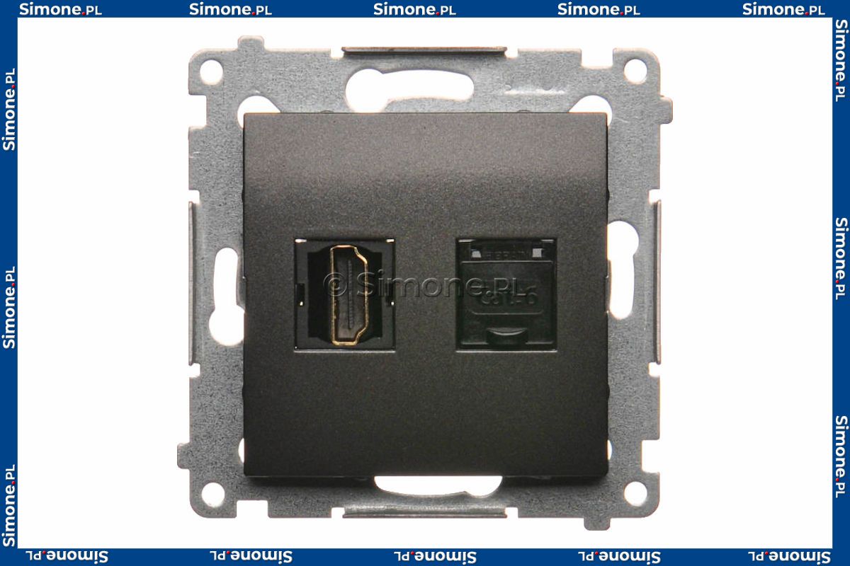 Gniazdo HDMI pojedyncze + Gniazdo komputerowe kat.6 Antracyt Simon 54