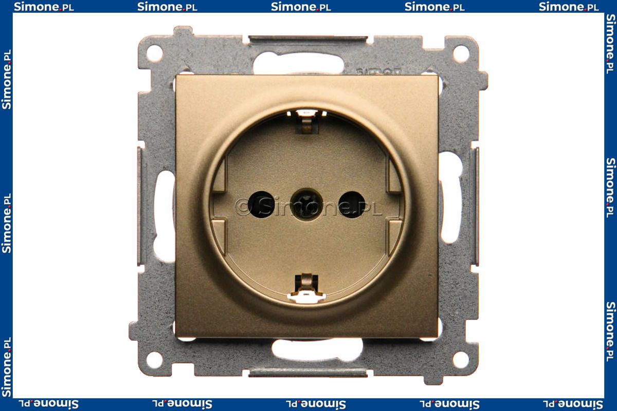 DGSZ1CZ.01/44 Gniazdo pojedyncze Schuko z przesłoną torów prądowych Złoty Mat Simon 54 - Widok z przodu